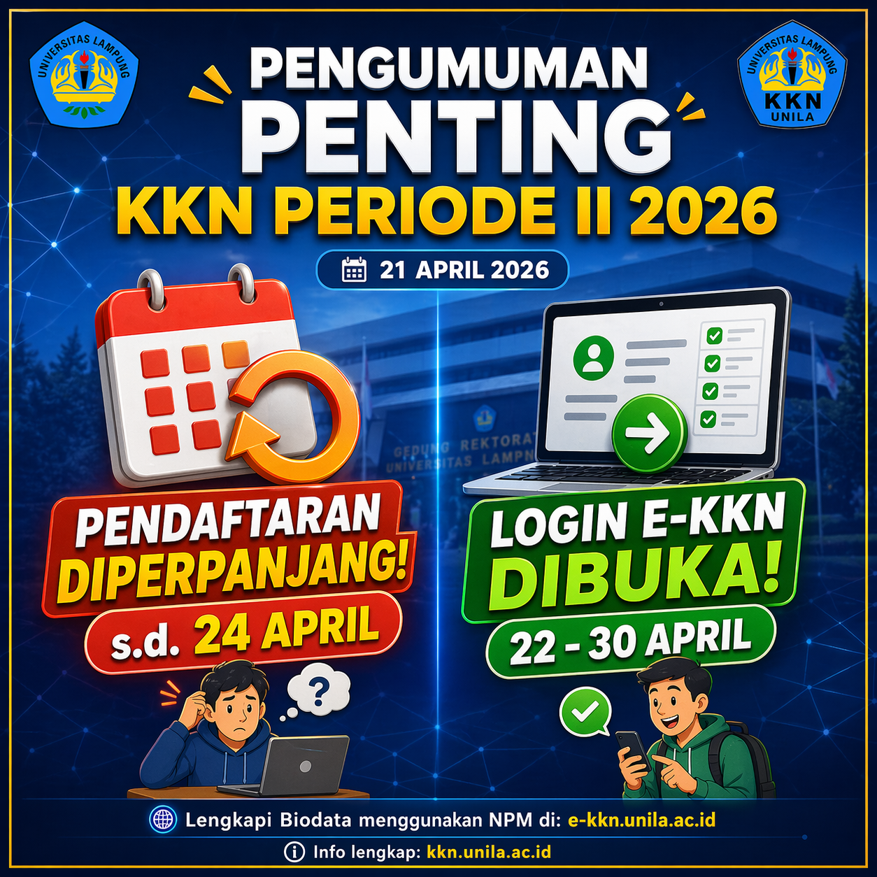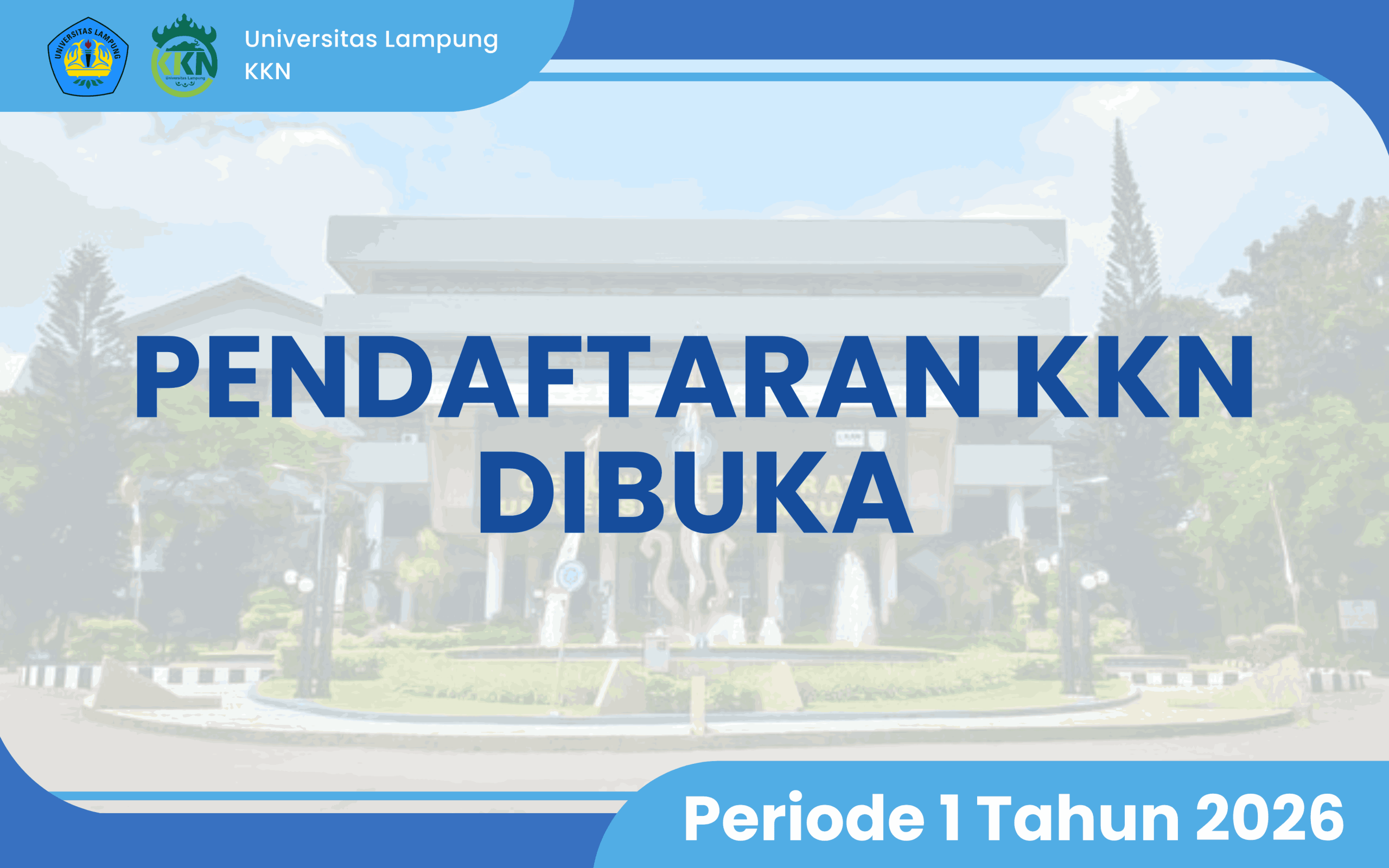 Diberitahukan kepada seluruh mahasiswa Universitas Lampung, Sentra KKN Universitas Lampung membuka pendaftaran Calon Peserta KKN Periode I Tahun 2026...